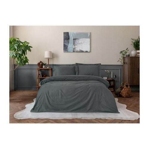 Parure de lit - 129CTN63974 - 1 housse de couette 220 x 240 cm + 2 taies d'oreiller 60 x 60 cm - Satiné 100% coton - Anthracite
