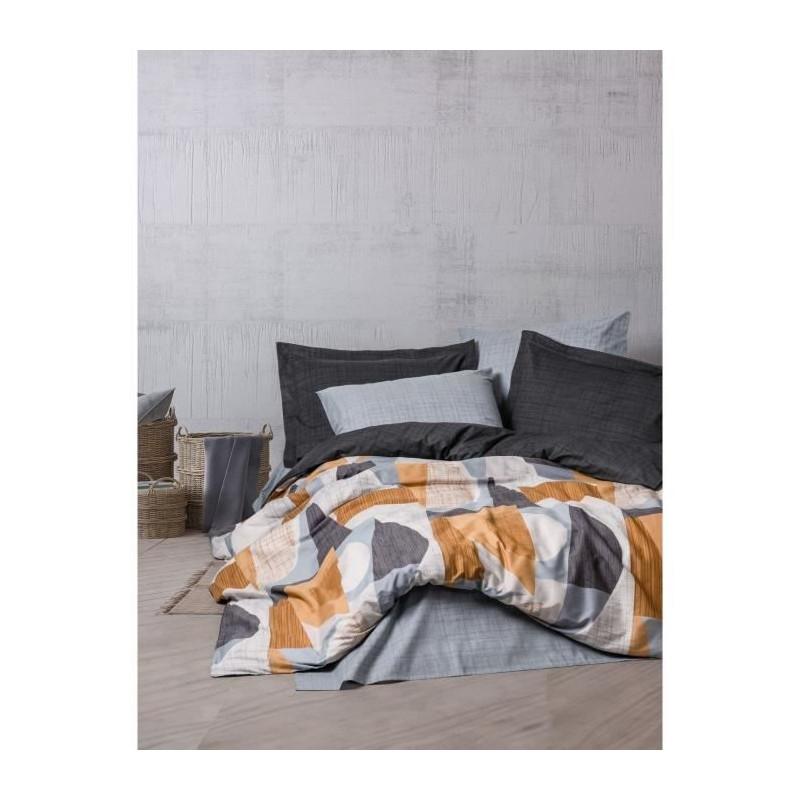 Parure de lit - 129CTN64490 - 1 housse de couette 220 x 240 cm + 2 taies d'oreiller 60 x 60 cm - 100% coton ranforcé - Gris