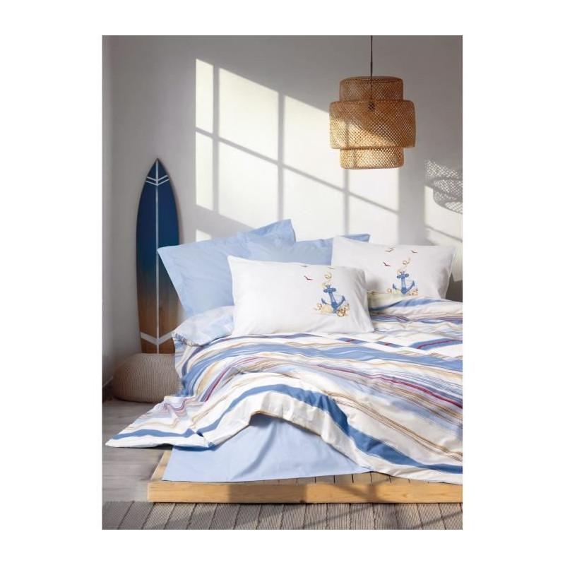 Parure de lit - 129CTN64496 - 1 housse de couette 220 x 240 cm + 2 taies d'oreiller 60 x 60 cm - 100% coton ranforcé - Bleu