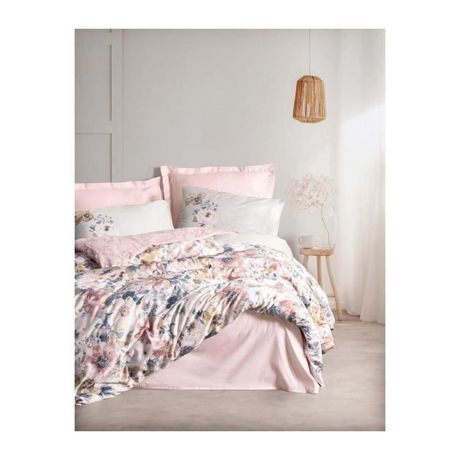 Parure de lit - 129CTN64605 - 1 housse de couette 220 x 240 cm + 2 taies d'oreiller 60 x 60 cm - Satiné 100% coton - Poudre
