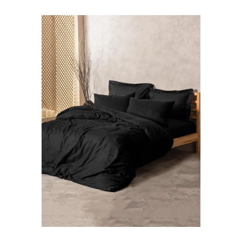 Parure de lit - 129CTN64621 - 1 housse de couette 220 x 240 cm + 2 taies d'oreiller 60 x 60 cm - 100% coton ranforcé - Noir