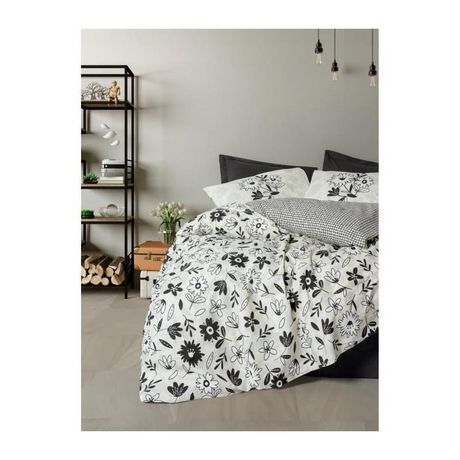 Parure de lit - 129CTN64831 - 1 housse de couette 220 x 240 cm + 2 taies d'oreiller 60 x 60 cm - 100% coton ranforcé - Noir