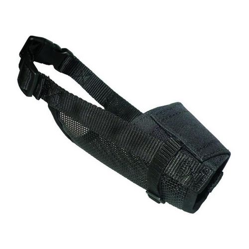 Museliere noire pour grand chien : évite au chien d'aboyer, mordre, mâcher, ronger, lui permet de continuer a boire, haleter. Partie en filet : respirant, agréable. Tour de cou et museau réglable : pratique, confortable. Facile a mettre, a ranger, légere, lavable en machine. Idéale pour des courtes durées.