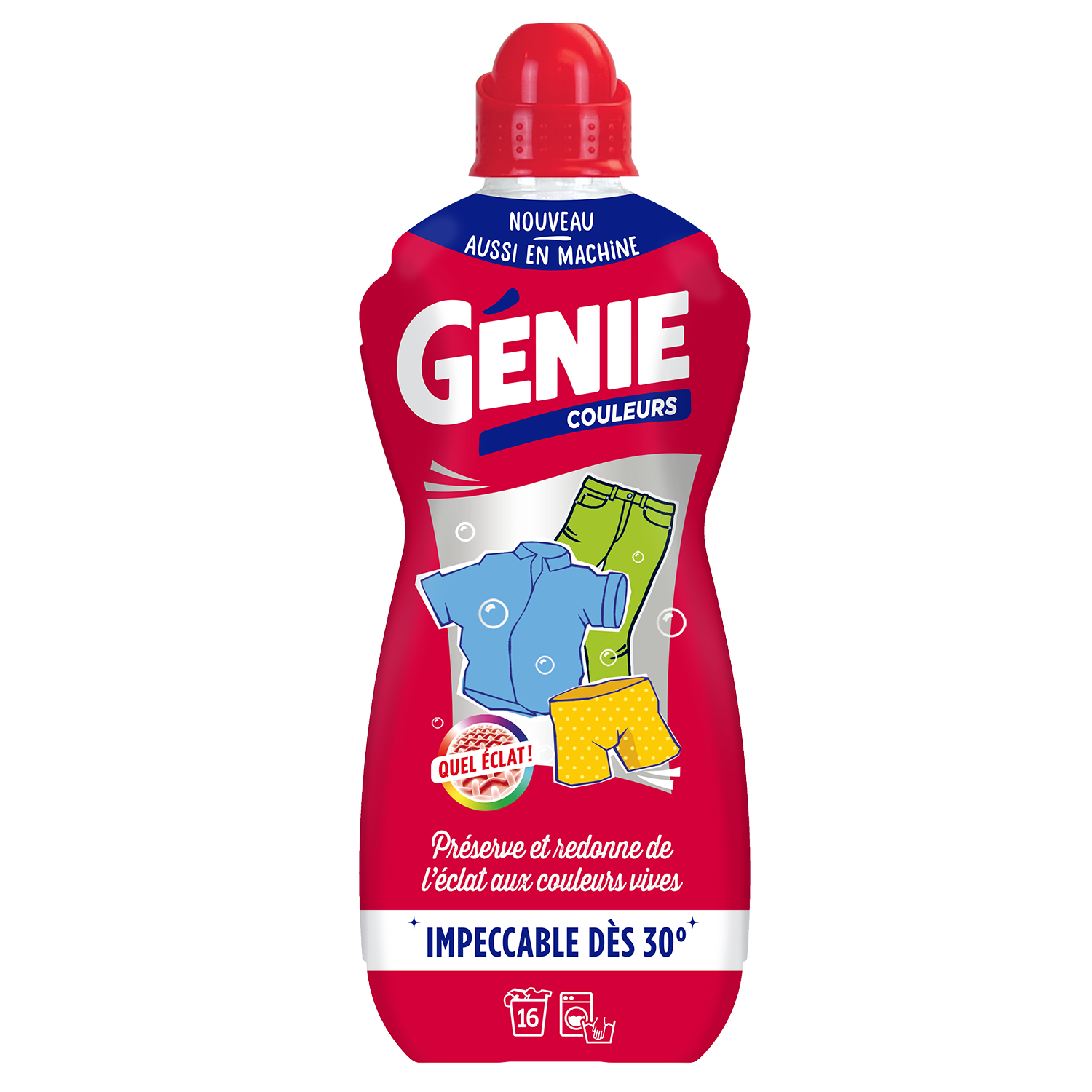 GENIE COULEURS 1L La formule Génie pénètre au cœur de votre linge pour mieux préserver et raviver l'éclat des couleurs en lissant les fibres; éviter le transfert de couleurs pendant le lavage; laisser vos vêtements propres et parfumés.
