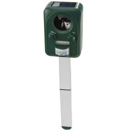 Ce répulsif à ultra sons, fonctionne grâce à un capteur solaire relié à 3 piles AA rechargeables. Il éloigne les nuisibles, les chats, les chiens, les rongeurs, les insectes... ne blesse pas, n'est pas dangereux pour les humains ni pour les animaux domestiques.