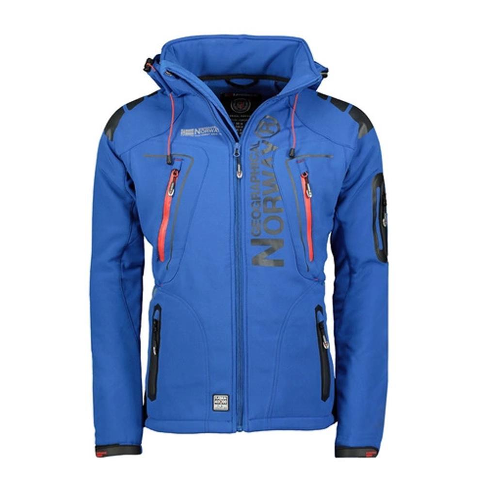 Restez bien au chaud avec ce blouson de la marque Geographical Norway !Capuche amovibleRésistant au vent et à l'eauFermeture éclairCol montantVeste softshellCol montant avec zip frontal à fermeture hauteBande élastique avec stoppeur à l'ourlet pour régler la largeurComposition : 96 % polyester, 4 % élasthanneCouleur : Bleu
