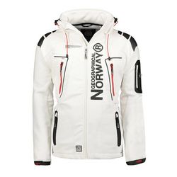 Restez bien au chaud avec ce blouson de la marque Geographical Norway !Capuche amovibleRésistant au vent et à l'eauFermeture éclairCol montantVeste softshellCol montant avec zip frontal à fermeture hauteBande élastique avec stoppeur à l'ourlet pour régler la largeurComposition : 96 % polyester, 4 % élasthanneCouleur : Blanc