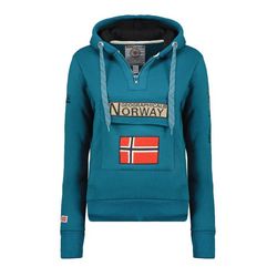 Craquez pour le sweat de la marque Geographical Norway !Coloris : Bleu CapucheManches longuesPoche plaquée sur la poitrine avec des broderiesComposition : 100% Polyester