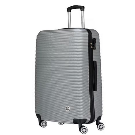 Optez pour la valise Cabine de la marque Geographical NorwayValise 24 pouces Valise rigideVolume : 65 litres 4 roues multidirectionnelles à 360°Poignée télescopique avec bouton poussoir2 compartiments dont 1 zippéCadenas à codeFermeture zippéeColoris : Silver Inscription en relief 1 poignée sur le d