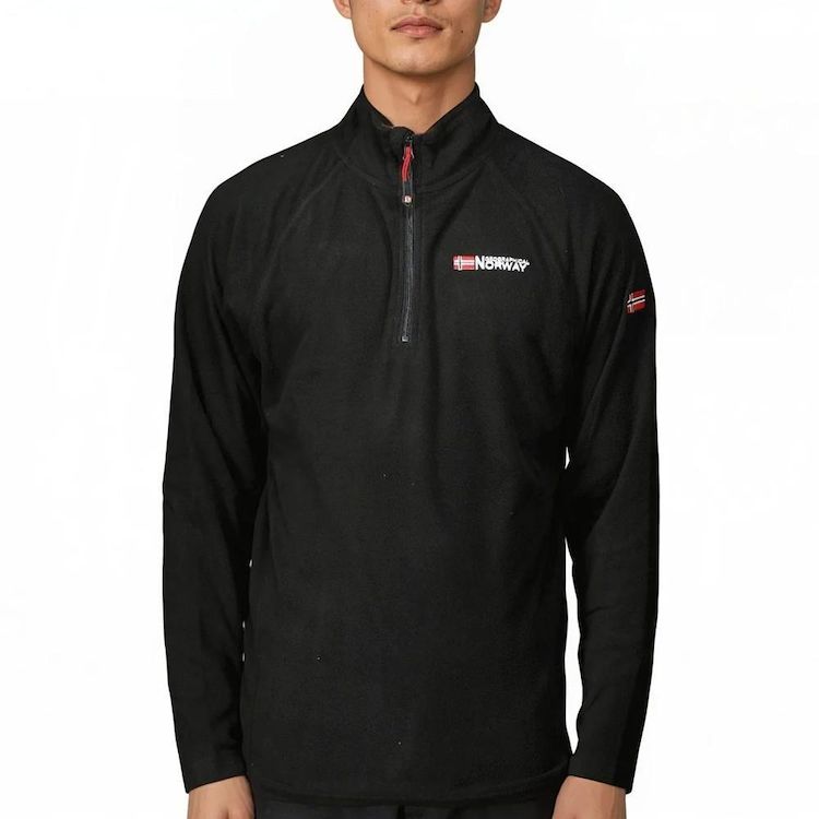 Découvrez le sweat polaire de la marque Geographical Norway !Coloris : Noir Col montant1/4 de Zip de fermetureLogo brodé sur la poitrine + brasComposition : 100% Polyester