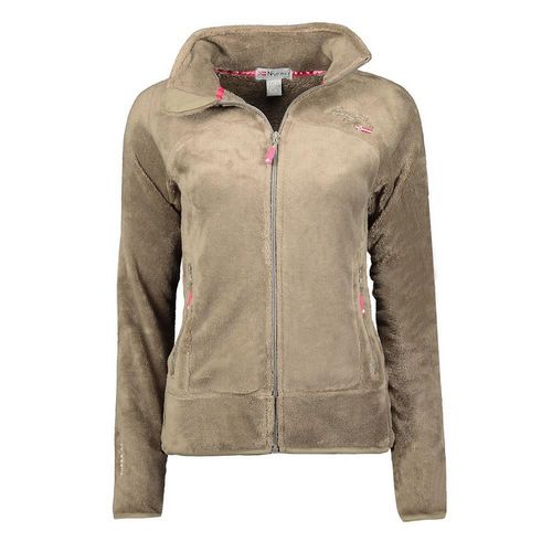 Veste polaire pour femme de la marque Geogrpahical Norway !Coloris : Marron Polaire tout doux2 poches zippéesLogo brodé en bas du brasÉcusson en PVC sur le haut de la mancheComposition : 100% polyester