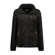 Veste Sherpa pour femme de la marque Geogrpahical NorwayColoris noirBroderie sur la poitrinePolaire tout doux2 poches zippéesLogo brodé en bas du brasÉcusson en PVC sur le haut de la mancheComposition : 100% polyester