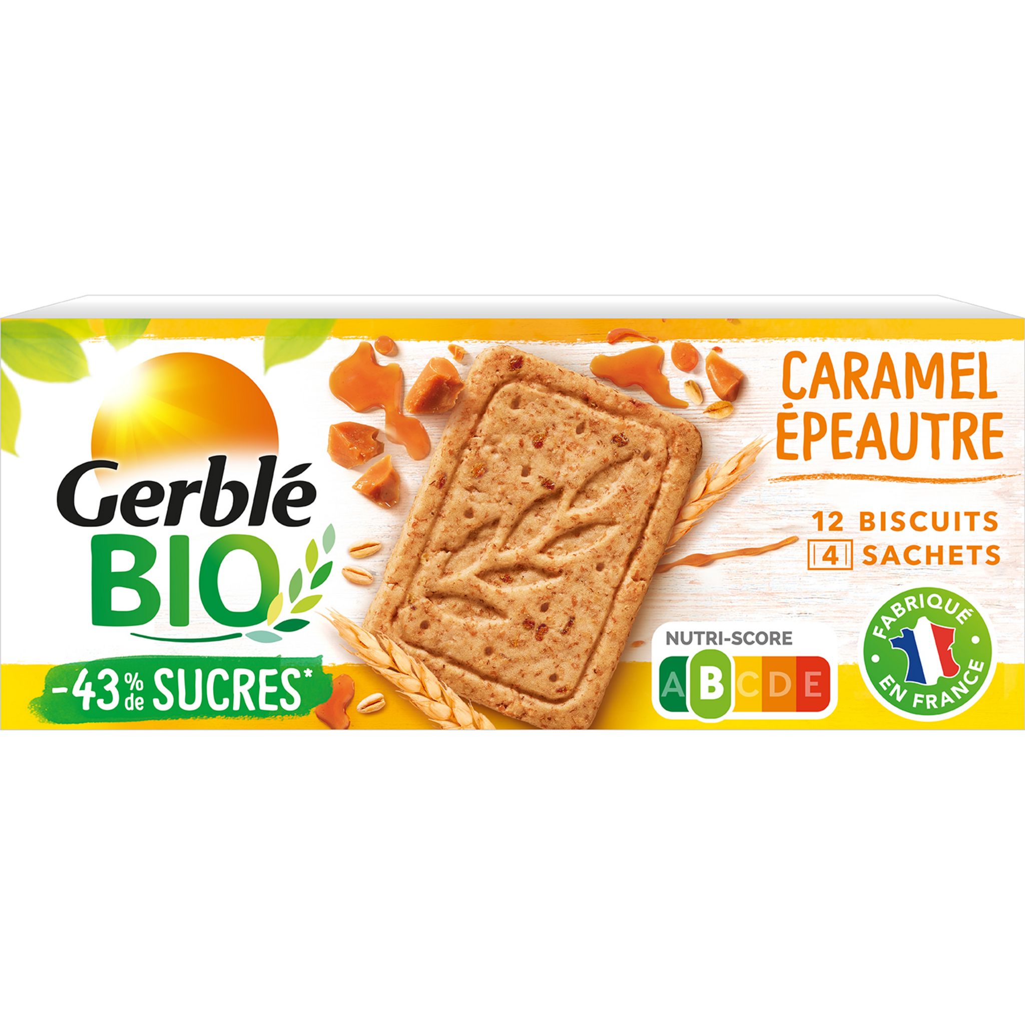 Biscuits à l'épeautre et au caramel, à teneur réduite en sucres, issus de l'agriculture biologique