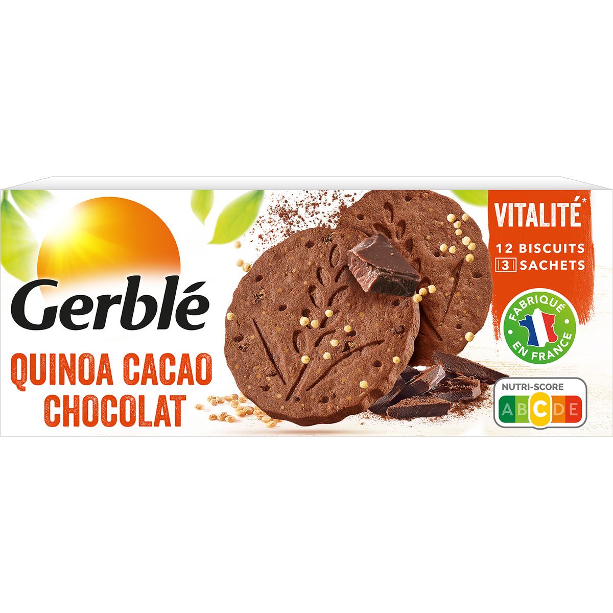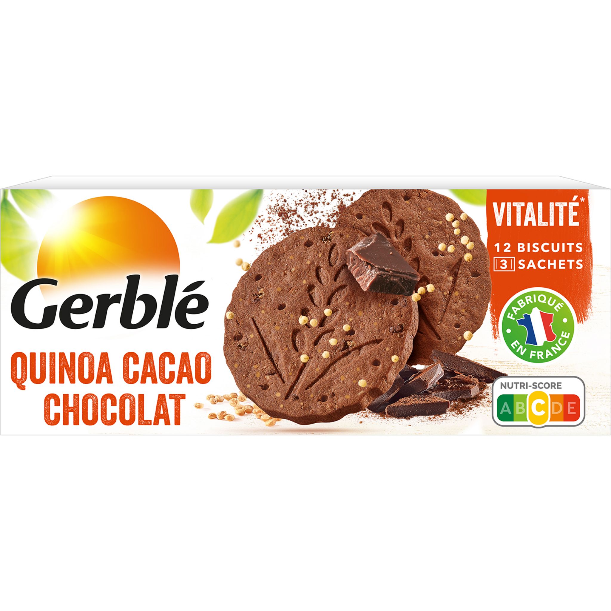 Savourez cette recette originale qui marie le quinoa et le goût intense du cacao et des pépites de chocolat. Le biscuit Quinoa Cacao Gerblé est source de magnésium et riche en fibres. Sans huile de palme, il est fabriqué en France.