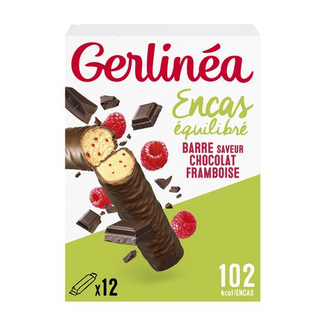 Gerlinéa crée depuis 25 ans des recettes diététiques innovantes afin de proposer aux femmes des produits alliant praticité, plaisir et équilibre nutritionnel. Découvrez nos Barres Encas Chocolat Framboise : riches en protéines et en fibres, sans huile de palme et sans colorant, elles constituent un goûter léger (avec un fruit) ou un petit déjeuner équilibré (avec une boisson chaude, un laitage et un fruit). Gourmandes et nomades, elles se glissent facilement dans un sac à main pour une pause savoureuse à tout moment de la journée. À consommer dans le cadre d'un mode de vie sain : 3 repas équilibrés, un apport suffisant en eau, au moins 30 minutes d'exercice physique par jour.