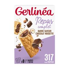 Une recette gourmande associant le blé à un cœur chocolat noisette, idéale pour se faire plaisir et pour un repas équilibré et gourmand. Remplacez un de vos repas par 2 barres Gerlinéa, accompagnées d'un fruit ou d'un laitage. Une portion à 317 calories, riche en protéines, source de fibres et de 13 vitamines et 10 minéraux qui vous permettra de gérer efficacement votre équilibre alimentaire.