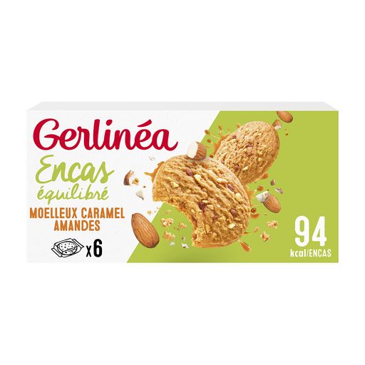 Un biscuit moelleux au caramel fondant et aux amandes croquantes pour un encas source de protéines, sans édulcorant, à teneur réduite en sucres (-40% par rapport à la moyenne des biscuits du marché) et en acides gras saturés (-79% par rapport à la moyenne des biscuits du marché). Pour une pause légère, dégustez votre moelleux accompagné d'une pomme et d'une boisson non sucrée.