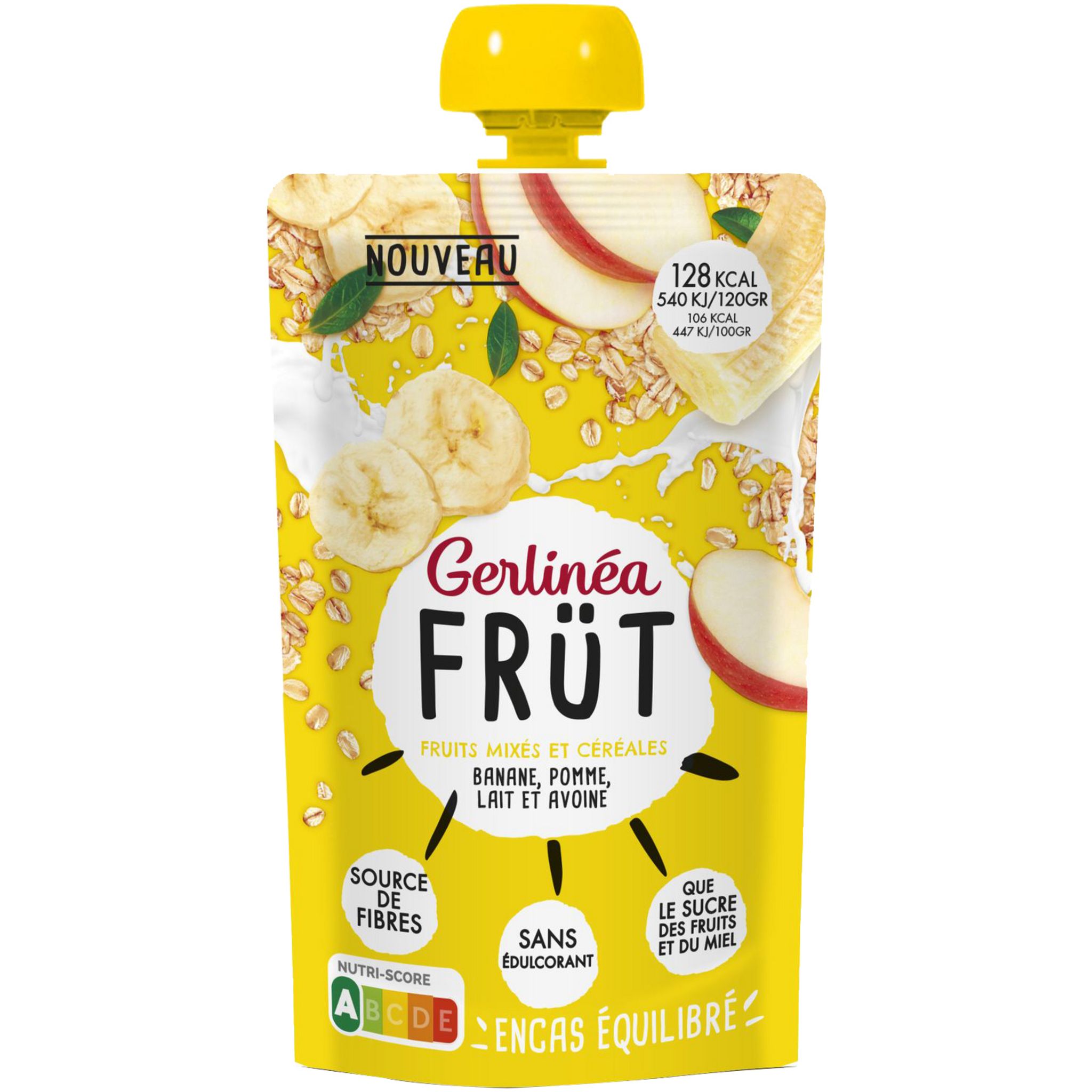 Spécialité fruits mixés banane pomme lait et avoine au miel gourde