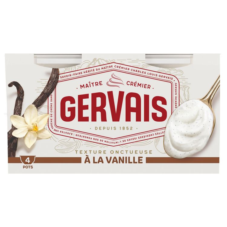 Gervais vanille s'inspire du savoir-faire du maître crémier Charles Gervais datant de 1852. C'est l'art de composer et de mélanger les meilleurs ingrédients tels que la douceur du lait, une crème onctueuse et une touche de vanille qui fait le génie de Gervais. Gervais vanille est idéal pour un dessert gourmand en fin de repas ou pour les petites faims. Et c'est tout simplement irrésistible !