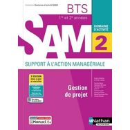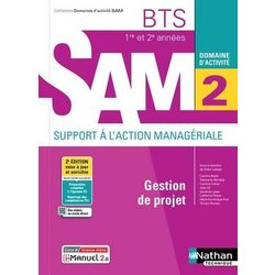 Cet ouvrage Domaine d'activité 2 - Gestion de projet pour les 1re et 2e années du BTS SAM, conforme au référentiel propose pour les deux années de BTS une approche pédagogique active et place les étudiants en situation dans des contextes professionnels variés. Il est proposé au choix en livre papier + licence numérique i-Manuel ou en 100% numérique i-Manuel. En version imprimée, cet ouvrage propose en complément une licence numérique i-Manuel 2. 0, la solution pour mettre les élèves en activité sur ordinateur ou sur tablette. En cas de prescription à l'ensemble de la alte (20 élèves minimum), l'activation de la licence élève est laissée au libre choix de l'enseignant. - Un ouvrage qui propose une démarche pédagogique active, développant les compétences de veille, la prise d'initiative et le travail en mode projet. - Les compétences transversales en informatique et en communication, balisées par des pictogrammes, sont réactivées au fil des chapitres. - Un balisage par chapitre indique chacune des compétences Pix abordées. - Une préparation complète à l'épreuve E5. - Les compétences rédactionnelles sont développées à travers des demandes fréquentes d'écrits structurés. - Pour permettre la différenciation pédagogique , les applications sont graduées en 2 niveaux de difficulté : maîtrise et expertise. - Une mise en situation place l'étudiant en contexte professionnel réaliste dans des organisations variées : entreprise, administration, ONG, association, etc. - Une rubrique Travail à faire permet l'apprentissage des notions à travers la réalisation d'une mission professionnelle. - Le questionnement s'appuie sur des annexes variées et des fiches ressources . - Des applications permettent ensuite la mise en pratique. - Des ressources complémentaires : présentations Powtoon des situations professionnelles, exercices interactifs et vidéos sont proposés et repérés par des QR Codes et mini-liens.