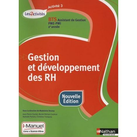 - NOUVEAU Les documents ont été actualisés. - NOUVEAU Un entraînement à l'épreuve E5 est proposé à la fin de chaque chapitre pour mobiliser les connaissances. - NOUVEAU La déclaration sociale nominative (DSN), et les changements que ce nouveau dispositif implique pour les entreprises, sont pris en compte. Un chapitre complet et une fiche ressource lui sont consacrés. - Des mises en situations professionnelles concrètes font réfléchir les étudiants à la gestion administrative du personnel et des ressources humaines. - Les missions proposées placent l'étudiant en position de collaborateur du chef d'entreprise devant être capable de prendre en charge la quasi-totalité de la gestion administrative du personnel. - I-Manuel La solution numérique pour enrichir son enseignement : - en usage collectif, pour animer sa alte et vidéoprojeter les activités et les corrections, - en usage individuel, pour motiver et faire travailler ses élèves sur poste informatique. En activant les licences de ses élèves, l'enseignant peut suivre leurs travaux, partager des documents avec chacun d'entre eux et corriger en ligne.