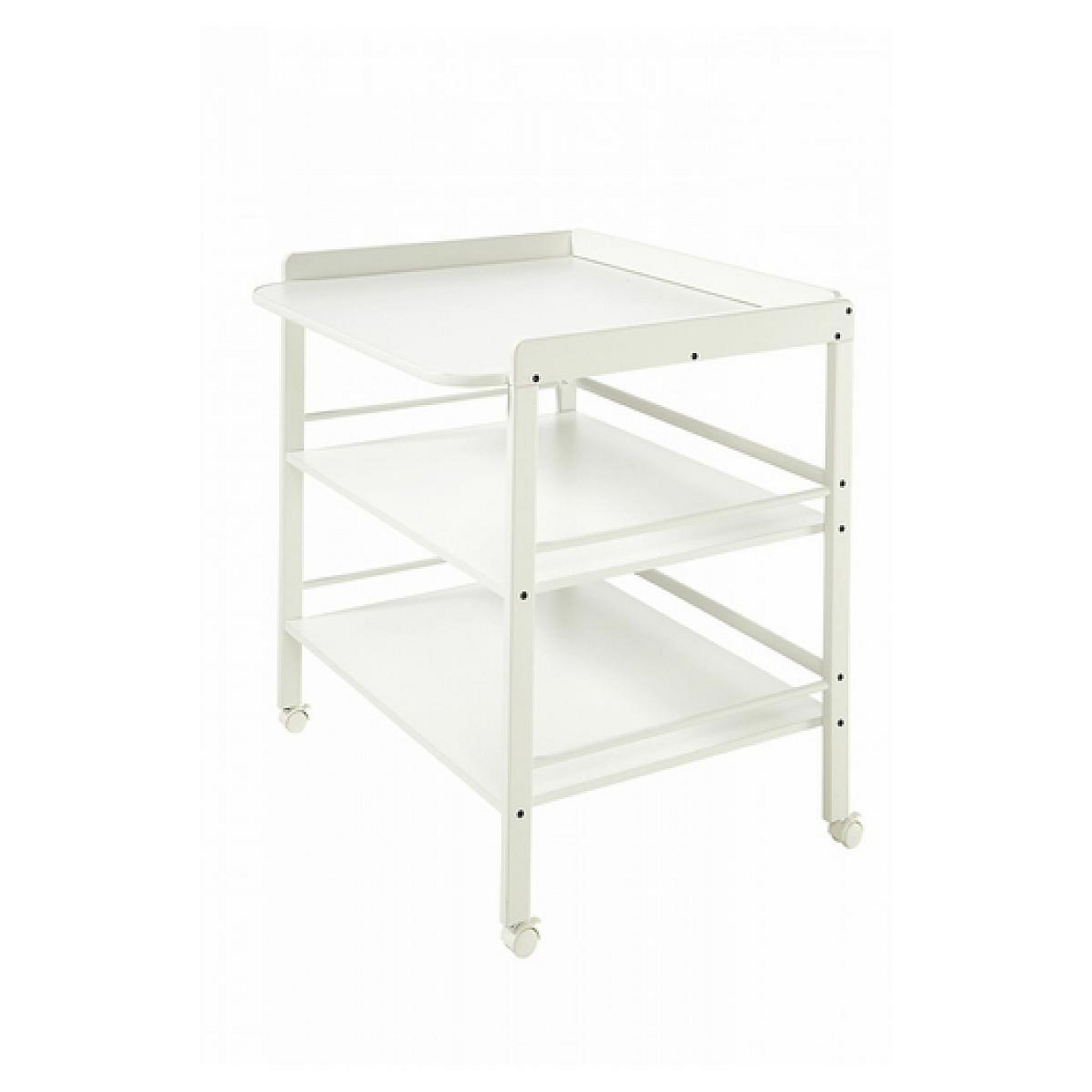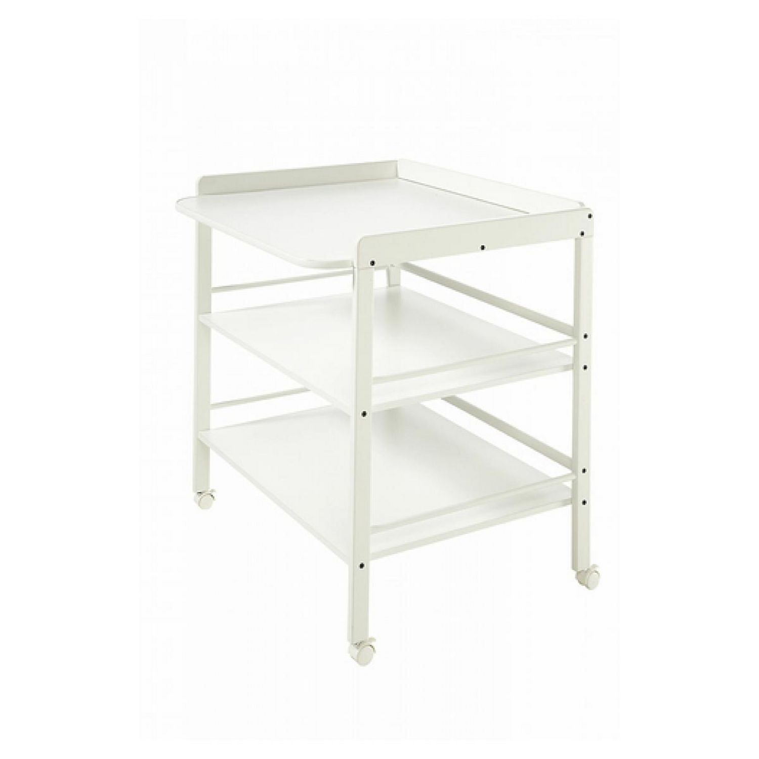 Parfaite pour les parents : cette table à langer en bois peut se placer n'importe où grâce à ses roulettes en plastique. Et vous pouvez, en outre, garder sous la main tout ce dont vous pouvez avoir besoin : deux grandes étagères de rangement accueillent les serviettes mouillées, les bodys, les pyjamas et, bien évidemment, les couches. Afin que rien ne vous échappe, les étagères sont munies de barres sur trois côtés, ce qui évite que quelque chose glisse, y compris lorsque vous déplacez la table. Avec ses 86 cm de large, la table à langer Clara est de bonne taille, afin que vous puissiez changer facilement votre enfant. Elle offre de la place pour tous les accessoires. Hauteur 86 cm Vous pouvez trouver plus bas une sélection de jolis matelas à langer adaptés. Dimensions du produit (L x l x h), ?77 x 88 x 11 cm