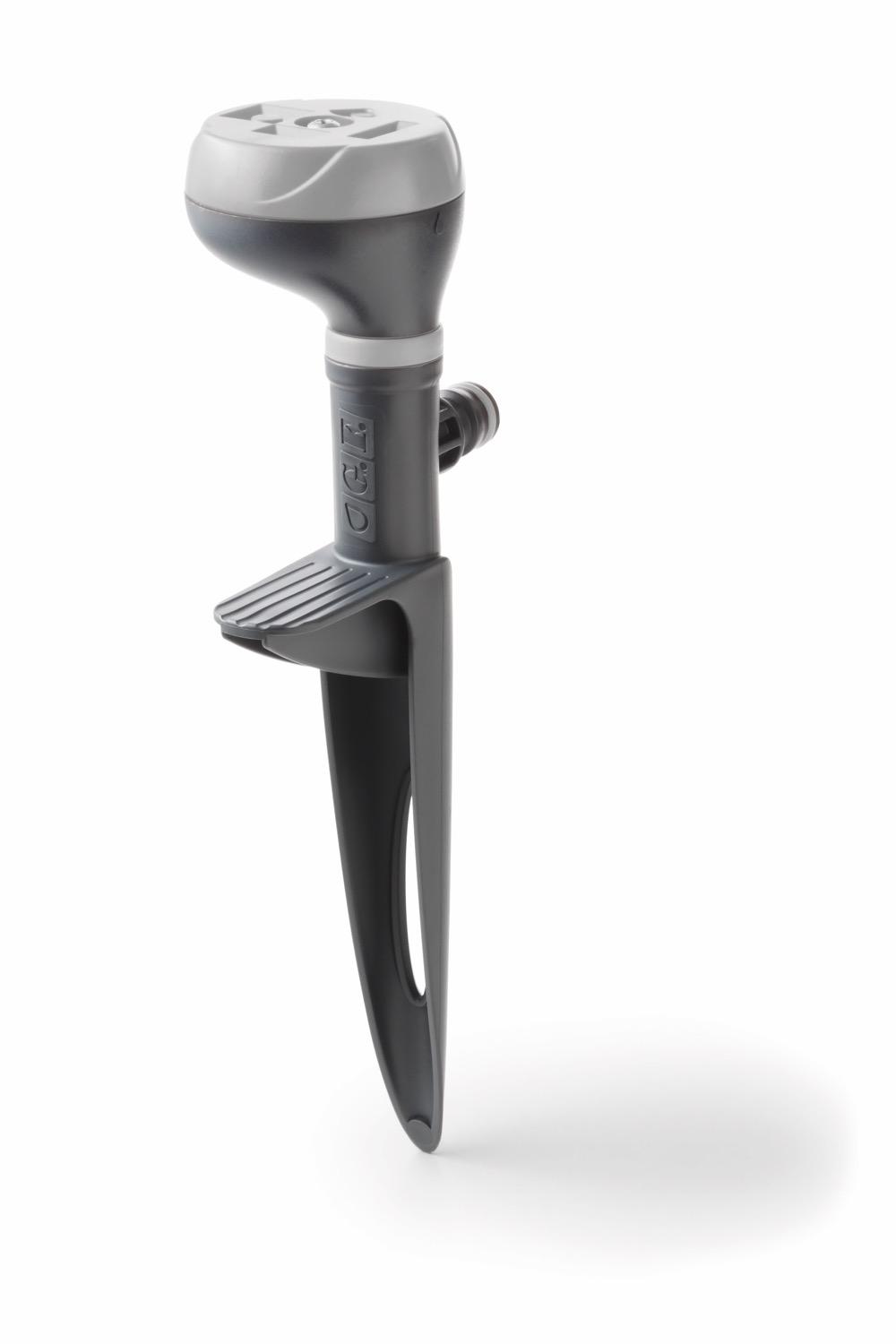 Arroseur circulaire multifonction sur piquet. Design moderne et fonctionnel étudié pour obtenir les meilleures prestations lors de son utilisation. Équipé d&rsquo,une fixation qui facilite l&rsquo,introduction du piquet dans le sol. Une simple rotation du disque permet d&rsquo,arroser 4 zones différ