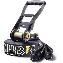 Qu'il s'agisse de freestyler, de gars en recherche d'adrénalie ou d'Urban slacker, la JIBLINE TREEWEAR reste le premier choix des trickliners. L'impression antidérapante offre un garantie supplémentaire pour tous les tricks et même les simples déplacements sur la Line. Cet ensemble correspond aux directives DIN (Norme de l'industrie Allemande) et est livré avec un RAT PAD, protection pour le cliquet. Composition du pack:. -12,5 m Slackline avec boucle d'attache renforcée. -Cliquet à verrouillage de sécurité et sangle de 2,5 m avec boucle renforcée. -Guide d'installation. -2 protections d'arbre (feutre noir avec velcro). Ensemble complet de 15 m (ligne de 12,5 m + sangle à cliquet de 2,5 m), largeur 50mm / 2 '. . Détails techniques :. -Slackline Jibline 15m avec Treewear (ligne 12,5m + sangle à cliquet de 2,5m). -Protection à cliquet avec verrou de sécurité. -2 protections d'arbre (feutre noir avec velcro), largeur de trait 50 mm. -Installation simple et rapide entre des arbres ou des points d'ancrage solides. -Tous les éléments de cliquet métal sous tension sont de couleur métallique et ne doivent pas être touchés pour des raisons de sécurité. Le «Revêtement noir» marque les parties du cliquet qui sont sécuritaires au toucher. Cela augmente la sécurité lors de l'utilisation du cliquet. -Sangle plate en polyester, spécialement développée pour le slackline (effet trampoline). Impression continue pour une meilleure adhérence et orientation sur la ligne. La poignée en plastique ergonomique du cliquet permet une tension confortable et efficace. -Sérigraphie bicolore. -Charge de rupture: 30 kN