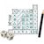 Lancez les dés et notez les symboles obtenus dans votre grille pour marquer le plus possible de points. Pour gagner, il faudra garder un ?il sur toutes les lignes et toutes les colonnes et tenter de créer des suites de 2, 3, 4 ou même 5 symboles identiques. Des règles avancées sont incluses pour les joueurs en quête de nouveaux défis. Dès 8 ans De 1 à 6 joueurs Durée de jeu : 10 min
