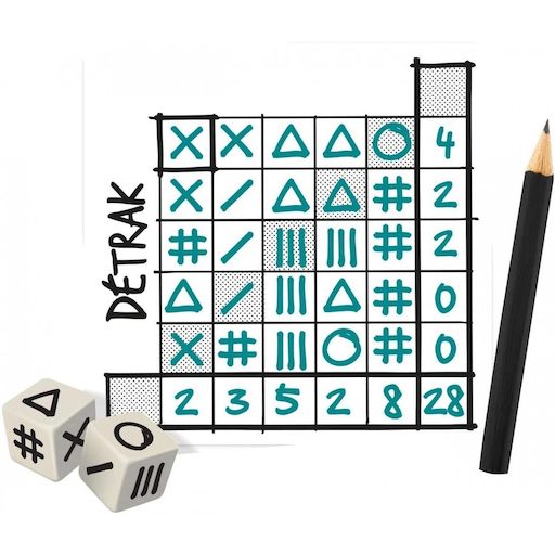 Lancez les dés et notez les symboles obtenus dans votre grille pour marquer le plus possible de points. Pour gagner, il faudra garder un ?il sur toutes les lignes et toutes les colonnes et tenter de créer des suites de 2, 3, 4 ou même 5 symboles identiques. Des règles avancées sont incluses pour les