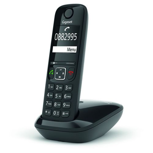 Discuter tranquillement et confortablement avec le téléphone sans fil GIGASET Téléphone sans fil - AS690 Solo GIGASET Téléphone sans fil - AS690 Solo - Noir. Enregistrez 100 contacts dans votre répertoire, lors de l'appel l'écran rétroéclairé laisse apparaitre le nom et numéro de téléphone de votre correspondant.