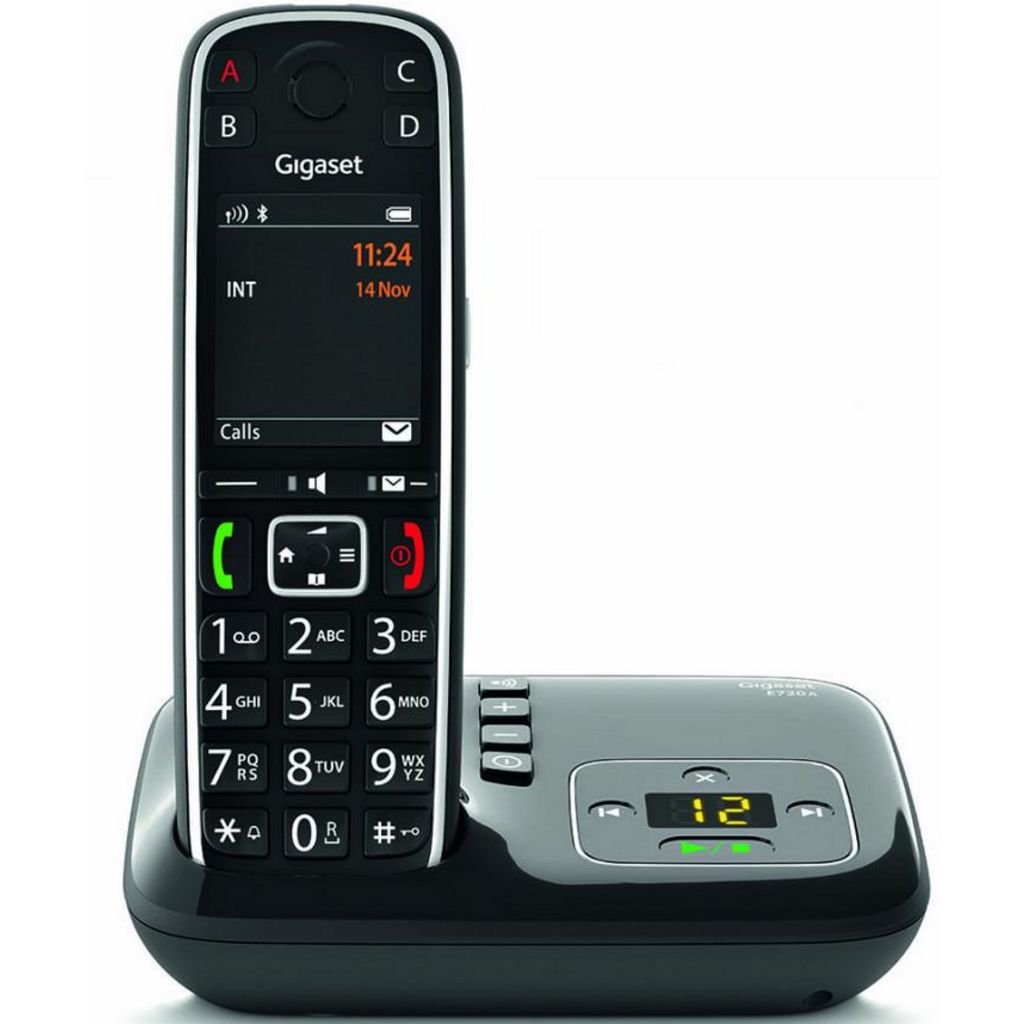 Gigaset GIGAE720ANOIR Téléphone sans fil dect Gigaset GIGAE720ANOIR avec répondeur. Un téléphone simple à utiliser avec protection contre les appels indésirables et de nombreuses fonctions pratiques au quotidien. Mode Boost avec une touche dédiée pour un volume amplifié. LED rouge clignotante sur la partie supérieure du combiné pour signaler visuellement les appels. Compatible avec les aides auditives, avec ou sans Bluetooth 4.2. Clavier parlant : énoncé vocal des touches du combiné lors de la numérotation.