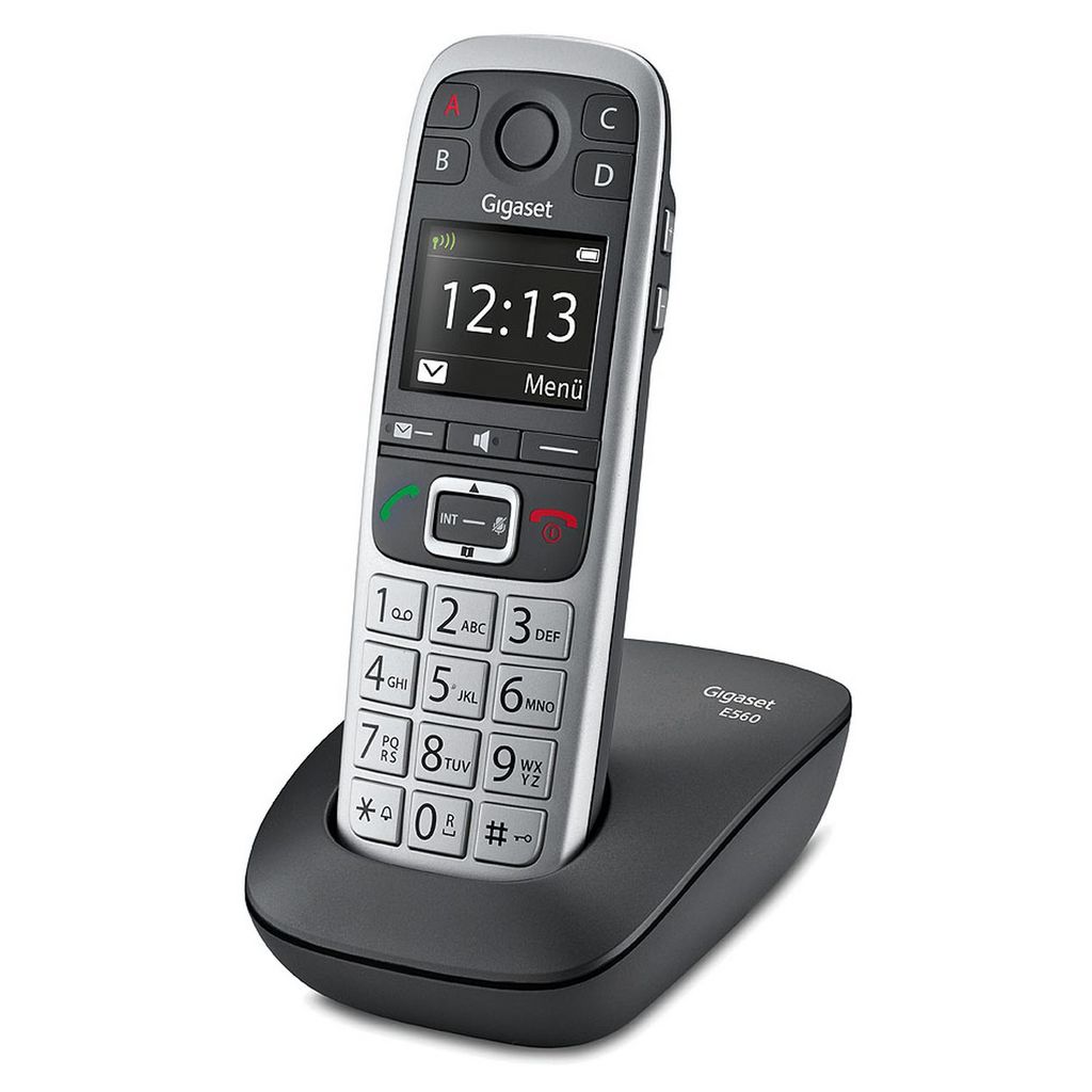 Gigaset GIGA E 560 SILVER Téléphone sans fil Siemens GIGAE560SILVER.- Clavier rétro-éclairé muni de grandes touches- Affichage grands caractères et écran colorisé,- Mains-libres son HDSP? extra-fort,- Compatible aides auditives,- Touche SOS,- 4 touches d?accès direct,- Touche latérale de réglage du volume,- Indicateur visuel des appels (LED),- Larges touches,- Conçu et fabriqué en Allemagne,- Packaging optimisé Modes ECO-DECT,- Faible taux de retour SAV Réparation en France,- Son Haute Qualité,- Technologie brevetée Gigaset avec annulateur d?écho.- Présentation de l'appelant- Répertoire 200 contacts- Batterie longue autonomie (14 heures en communication et 300 en veille).