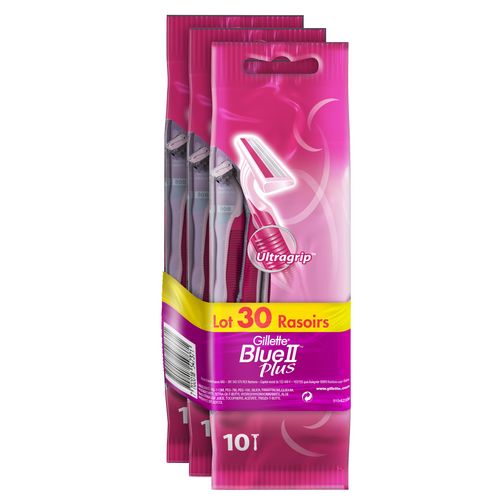Les rasoirs jetables pour femme Gillette Blue II Plus sont dotés de 2 lames confort Gillette et d’un manche Ultragrip doux pour un contrôle plus efficace. Contient également de l’huile pour bébé et de l’aloe vera pour une meilleure glisse.