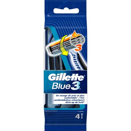 Gillette Blue3 Rasoir Jetable Pour Homme - Lot De 4 Le Rasoir Jetable Gillette Blue 3 Pour Homme offre un rasage de plus près et un rinçage 100 % plus performant (par rapport au Blue II). Il est doté d’une bande Lubrastrip améliorée pour un confort extraordinaire (par rapport au Blue II Plus). Une tête pivotante épouse les contours de votre visage. Il est doté d’un manche Ultragrip doux pour un contrôle exceptionnel. Jusqu’à 5 rasages par rasoir.