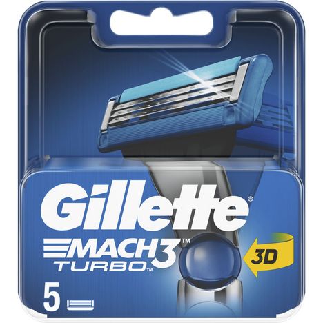 Gillette Mach3 Turbo Lames De Rasoir Pour Homme, 5 Recharges Avec Des Lames Plus Résistantes Que L’Acier