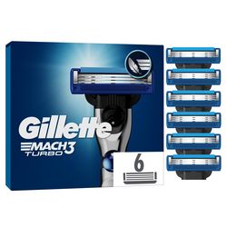 Profitez d'un rasage classique et de près avec les recharges de Lames Gillette Mach3 Turbo pour homme. Ces recharges sont dotées de NOUVELLES lames conçues pour réduire la pression exercée par le rasage sur la peau, offrant un rasage doux et confortable. Elles sont également équipées d'une Bande Lubrifiante pour une glisse plus fluide, pour profiter d'un rasage plus confortable. Chaque recharge offre jusqu'à 15 rasages (*sur la base de 3 rasages par semaine) et est équipée d'un garde-confort avec micro-lamelles qui prépare votre peau au rasage, améliorant ainsi le confort de votre routine de rasage. Pour des résultats optimaux, associez-le au Gel à Raser Gillette.