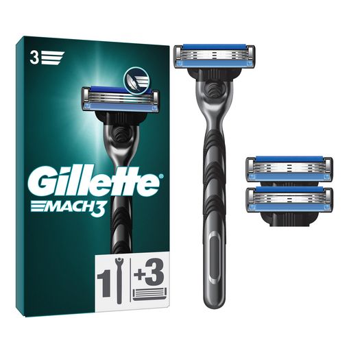Profitez d'un rasage classique et de près avec le rasoir Gillette Mach3 pour homme. Ce rasoir est doté de NOUVELLES lames conçues pour réduire la pression exercée par le rasage sur la peau, offrant un rasage doux et confortable. Le Mach3 est équipé d'une Bande Lubrifiante pour une glisse plus fluide et d'un garde-confort avec micro-lamelles qui prépare votre peau au rasage, pour profiter d'un rasage plus confortable. Chaque recharge offre jusqu'à 15 rasages (*sur la base de 3 rasages par semaine). Pour des résultats optimaux, associez-le au Gel à Raser Gillette.