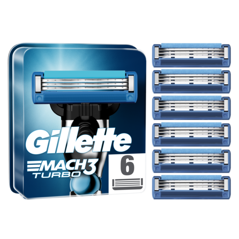 Les recharges de lames de rasoir Gillette Mach3 Turbo pour homme sont conçues pour vous offrir un rasage classique, précis et fiable. Avec 3 lames plus résistantes que l’acier qui restent affûtées plus longtemps (par rapport au Sensor3). Toutes les recharges de lames Mach3 s’adaptent à tous les manches Mach3.