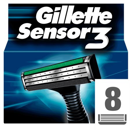 Les lames de rasoir Gillette Sensor3 sont constituées de trois lames et d'une bande lubrifiante Lubrastrip pour glisser sans effort sur votre peau. Les lames Sensor montées sur ressort et la tête pivotante Gillette Sensor3 épousent les moindres détails de votre peau pour un rasage de près confortable et tout en douceur. Toutes les lames Sensor s'adaptent à l'ensemble des rasoirs Sensor.