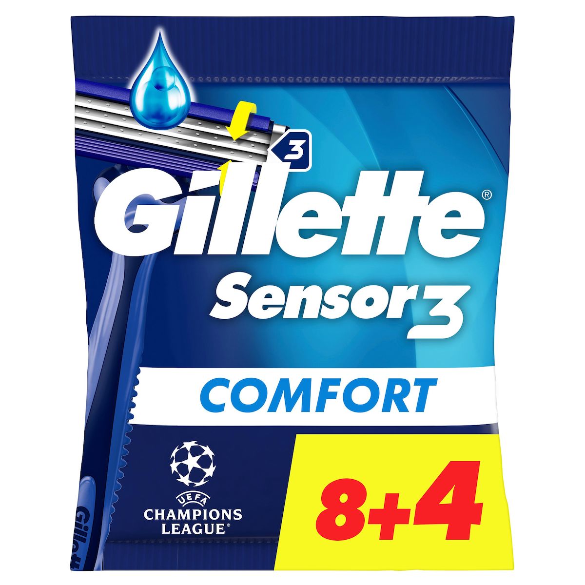 Le Gillette Sensor3 est le rasoir jetable à 3 lames le plus vendu au monde. Ces rasoirs pour homme sont dotés de lames qui s'adaptent à la peau et de la technologie ComfortGel activée par l'eau pour vous offrir un rasage plus précis et plus doux*. Des lames faciles à rincer pour un rinçage 2 fois plus efficace*. Les rasoirs jetables avec Bande Lubrifiante sont dotés d'une tête pivotante qui épouse les contours de votre visage et facilite le rasage des zones difficiles d'accès. Le rasoir jetable vous offre jusqu'à 12 rasages confortables.* par rapport au Blue/Sensor II Plus. Remarque : en fonction des stocks disponibles, le pack peut ne pas comporter le logo de l'UEFA Champions League.