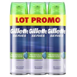 Gillette Series Peaux Sensibles Gel À Raser Pour Homme 3x200 ml