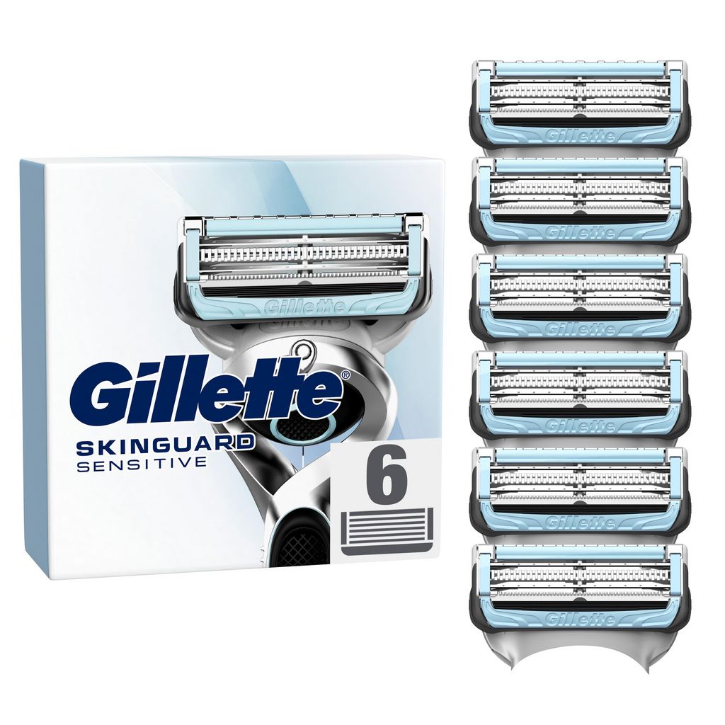 Les cartouches Gillette SkinGuard Peau sensible Homme, conçues pour peaux sujettes aux imperfections et boutons. L'innovation SkinGuard protège la peau des lames pour aider à réduire l'irritation. Deux lames à faible force de coupe aident à réduire le tiraillement.