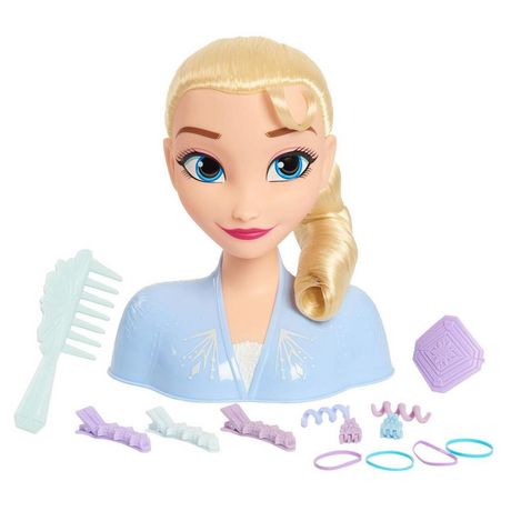 Avec la tête à coiffer Elsa, amuse-toi à faire des coiffures incroyables sur ses longs cheveux blonds.