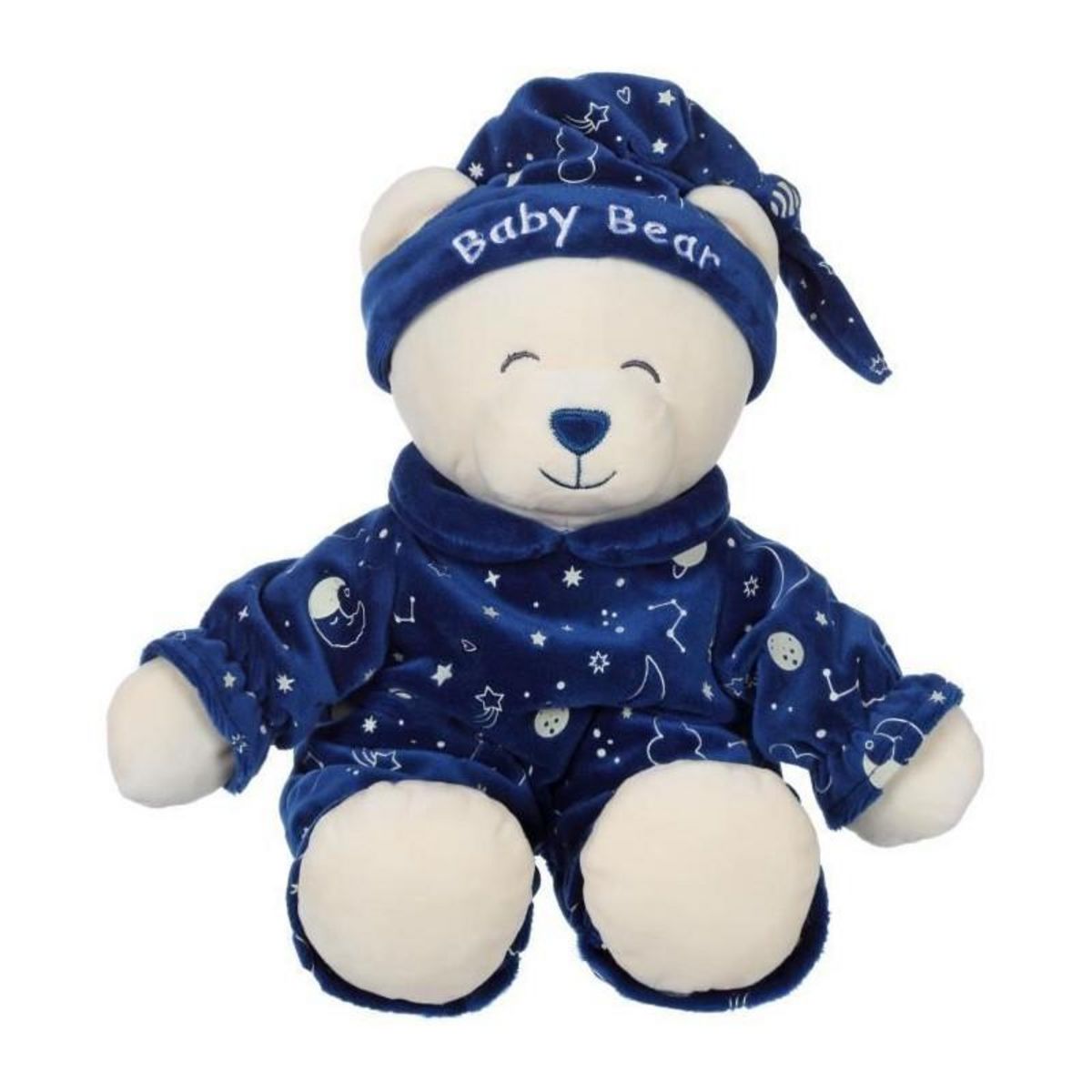 Notre adorable ourson baby bear s'offre une édition limitée avec une version qui brille dans la nuit ! De nombreux motifs sur son pyjama deviennent alors phosphorescents et permettent a bébé de s'endormir paisiblement. Peluche 24 cm dans une jolie boîte cadeau. Lavable a la main