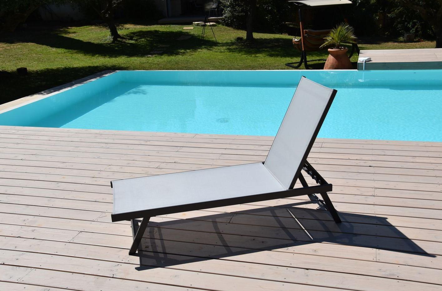Le bain de soleil CESENA proposé par la marque GIVEX est conçue avec une structure en aluminium qui lui confère une grande résistance, la structure est inoxydable et ne rouille donc pas au contact de l'eau et résiste aux variations climatiques. Le textilène quant à lui est une toile tissée en PCV tr