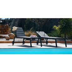 Bain de Soleil FORLI XL Alu Anthracite structure Anthacite, toile textilene 2X1 MATELASSE Gris foncé Dimension : 202 x 65 x hauteur assise 43 cm.