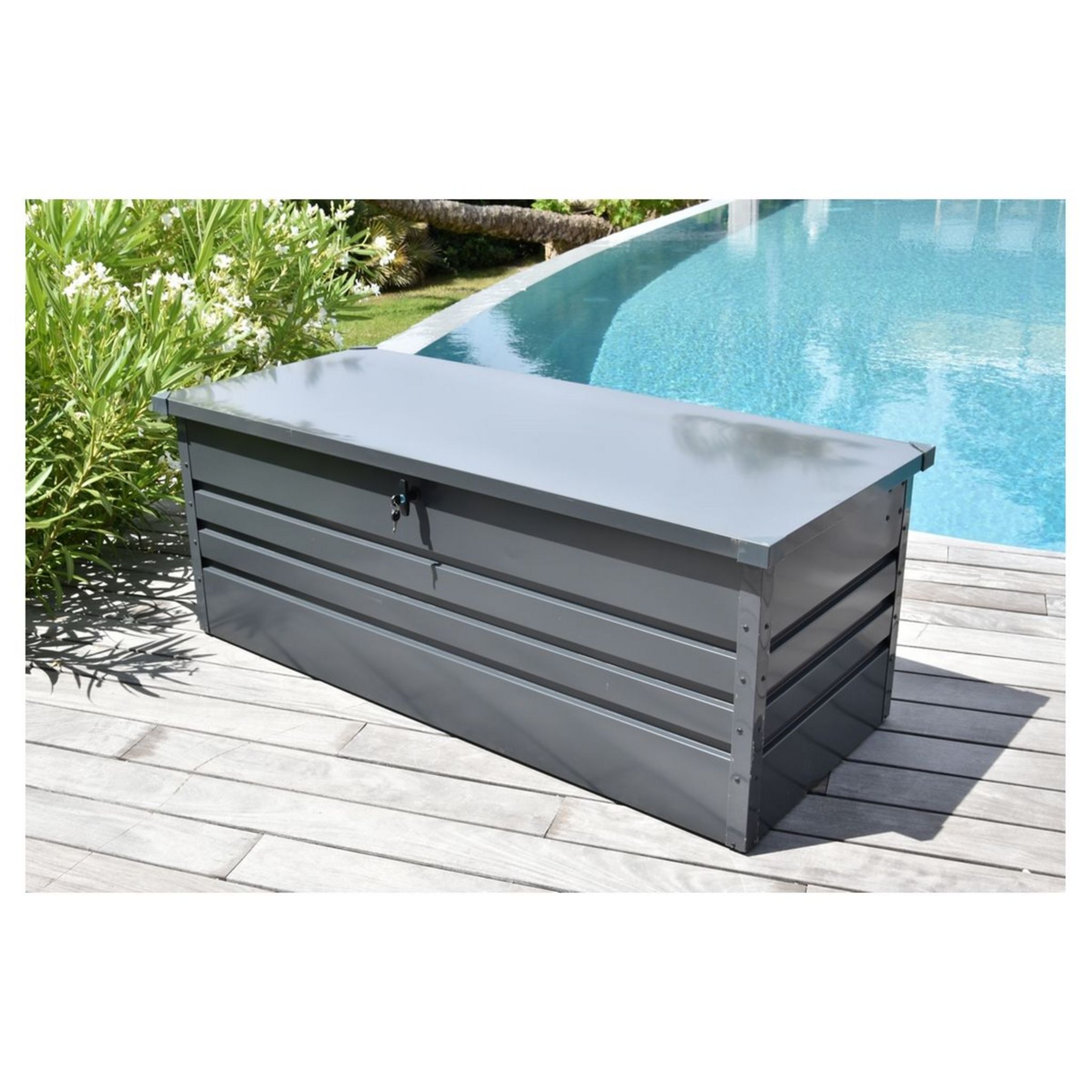 Ce coffre de jardin STUFF de coloris grs, idéal pour ranger vos affaires pour le jardin ou la piscine. Ce coffre de jardin peut accueillir jusqu'à 650 L et possède un verrou avec clé vérin pour plus de sécurité.
