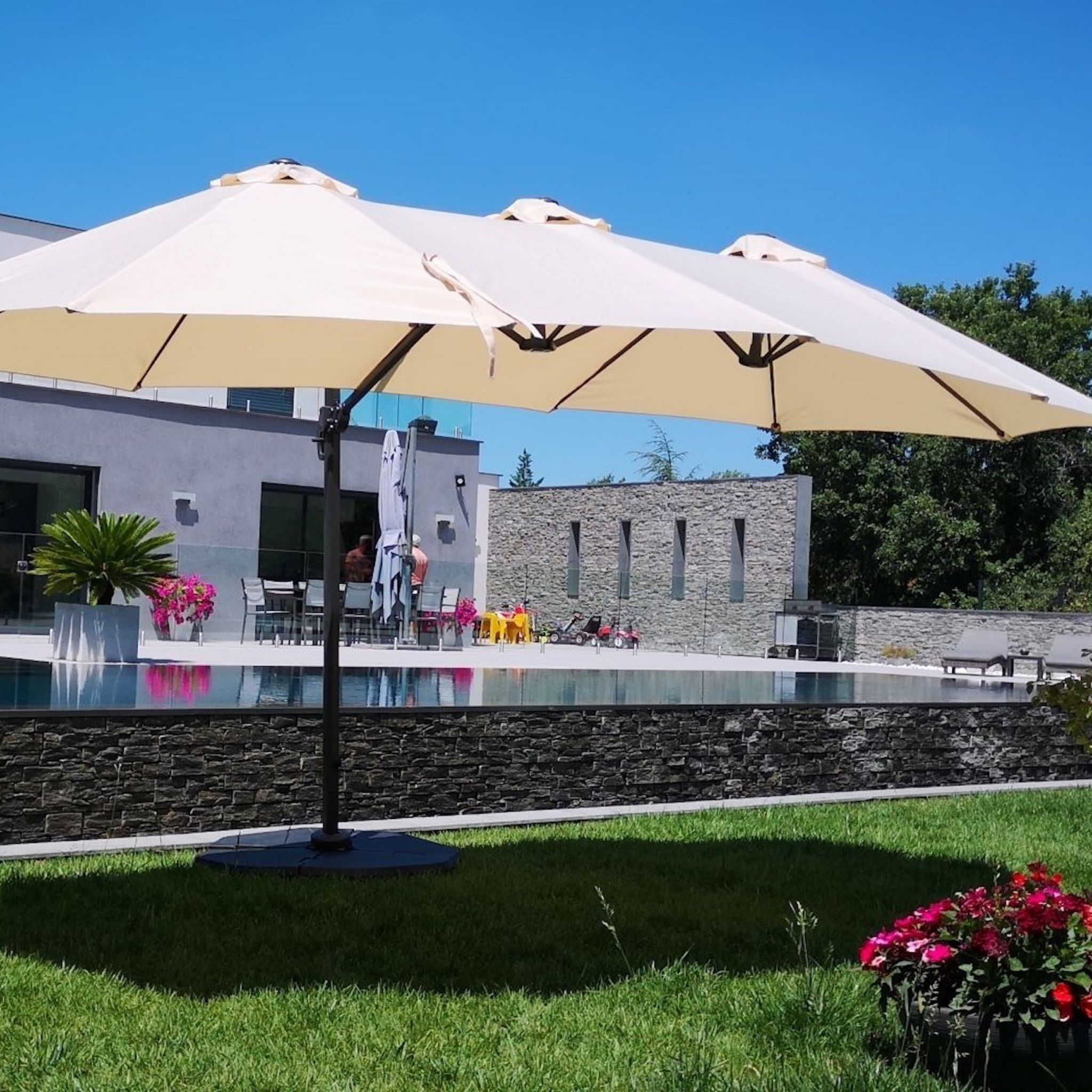 Parasol ovale avec 3 têtes - Ecru - 2,7x4,6m - DEPORWIDE