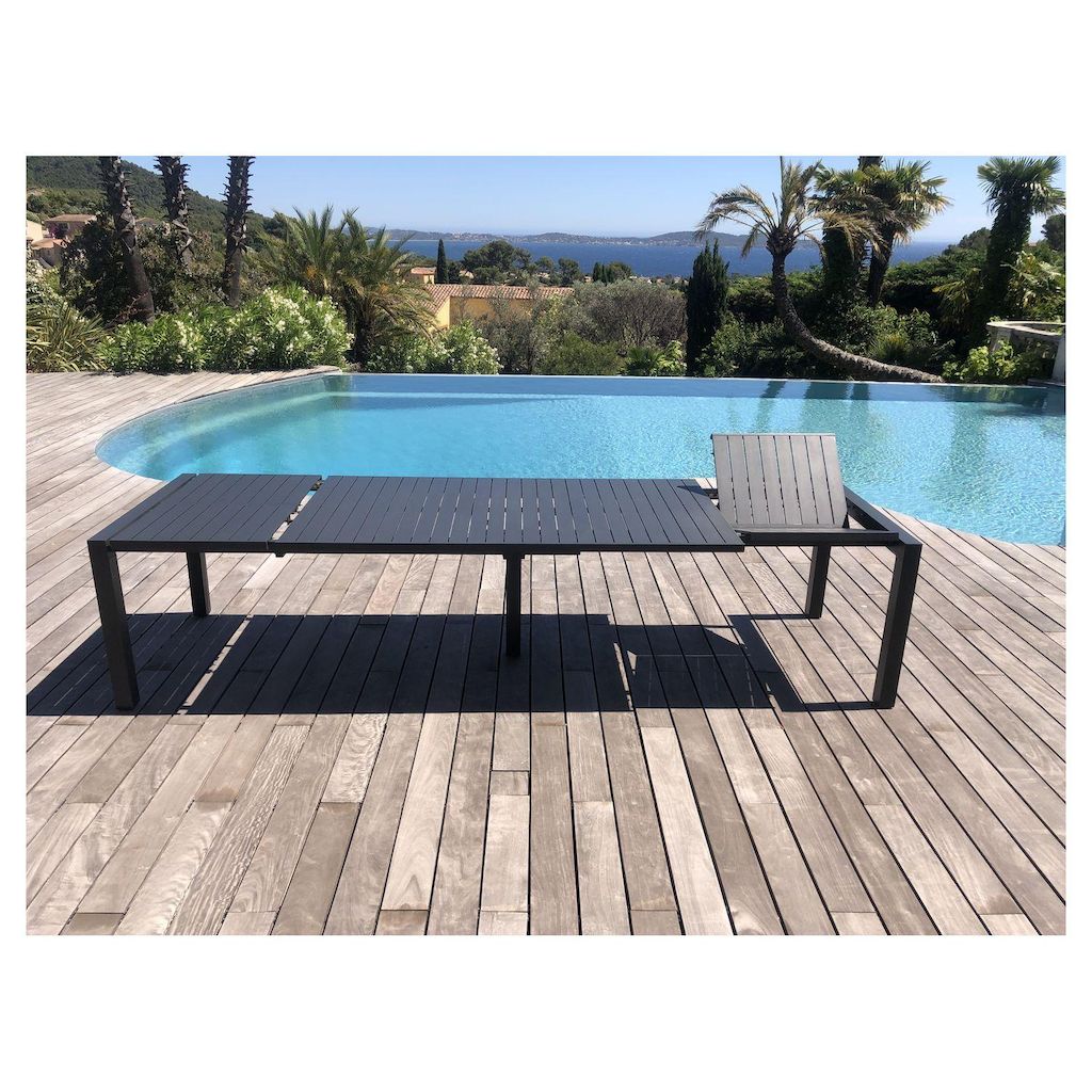 Table XXL ''PRISMA'‘ Alu extensible Dim L200/260/320 X  100 X 75 cm Plateau latte aluminium gris graphite Allonge papillon aux extrémités